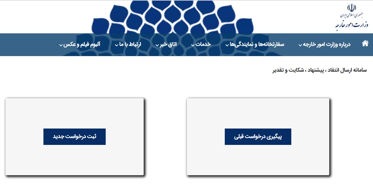 سامانه انتقادات و پیشنهادات وزارت امور خارجه