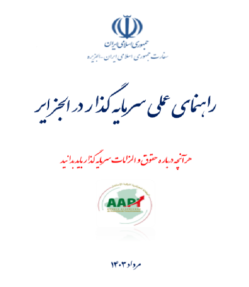 دولت الجزایر راهنمای عملی سرمایه گذاران در این کشور را منتشر کرد که فایل آن به زبان فارسی در لینک پیوست برای بهره برداری علاقمندان به سرمایه گذاری در الجزایر در دسترس قرار می‌گیرد.